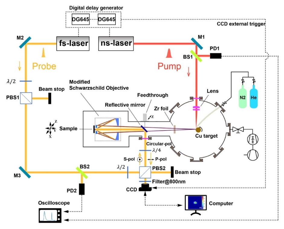 圖1 納秒極紫外泵浦-飛秒紅外激光探測成像損傷測試系統